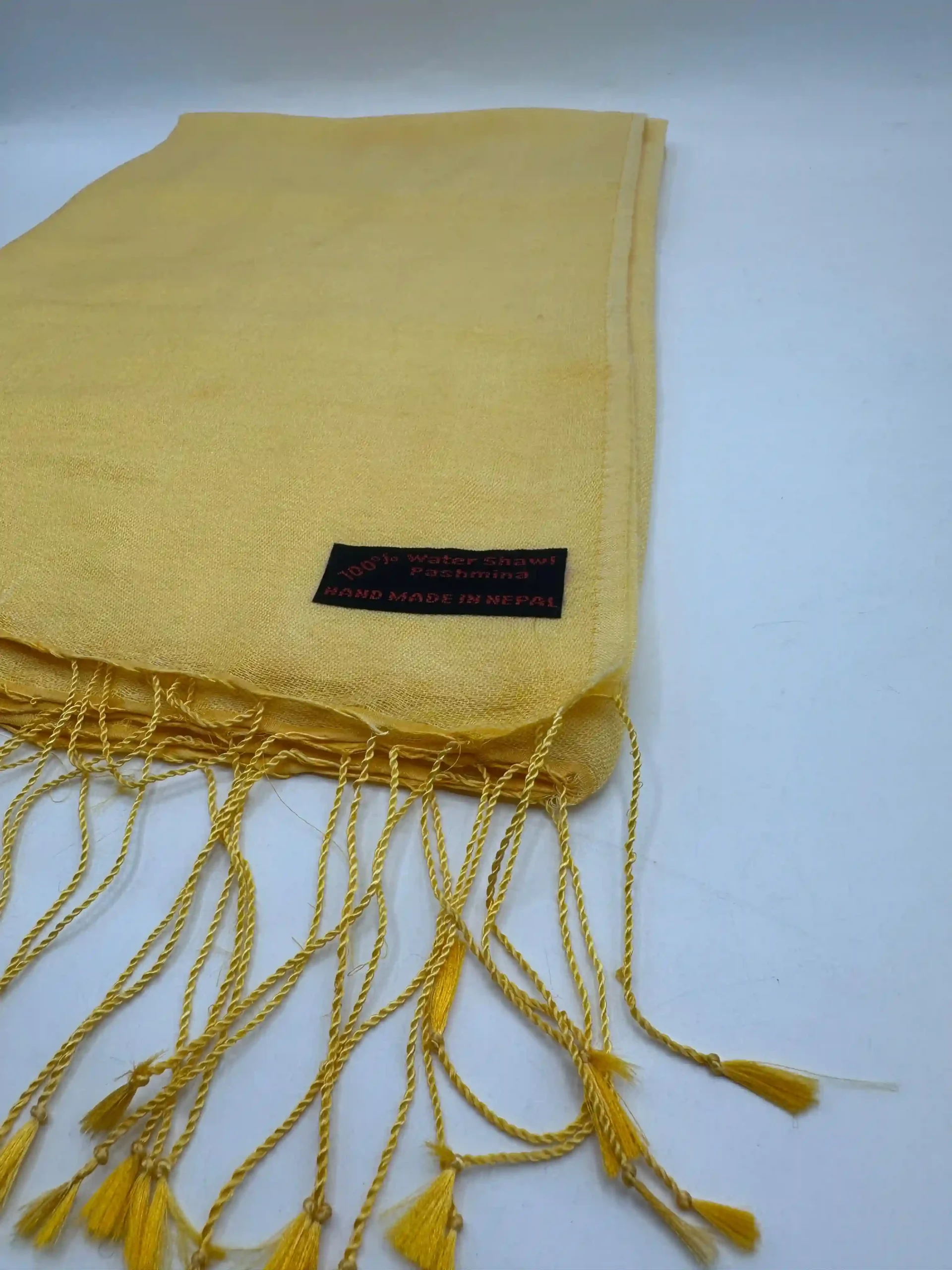 Sunshine in fabric form: this handmade Yellow Water Pashmina Shawl is feather-light, luxuriously soft, and dyed in a luminous watery yellow—crafted with care by artisans at Handcrafts Gallery.