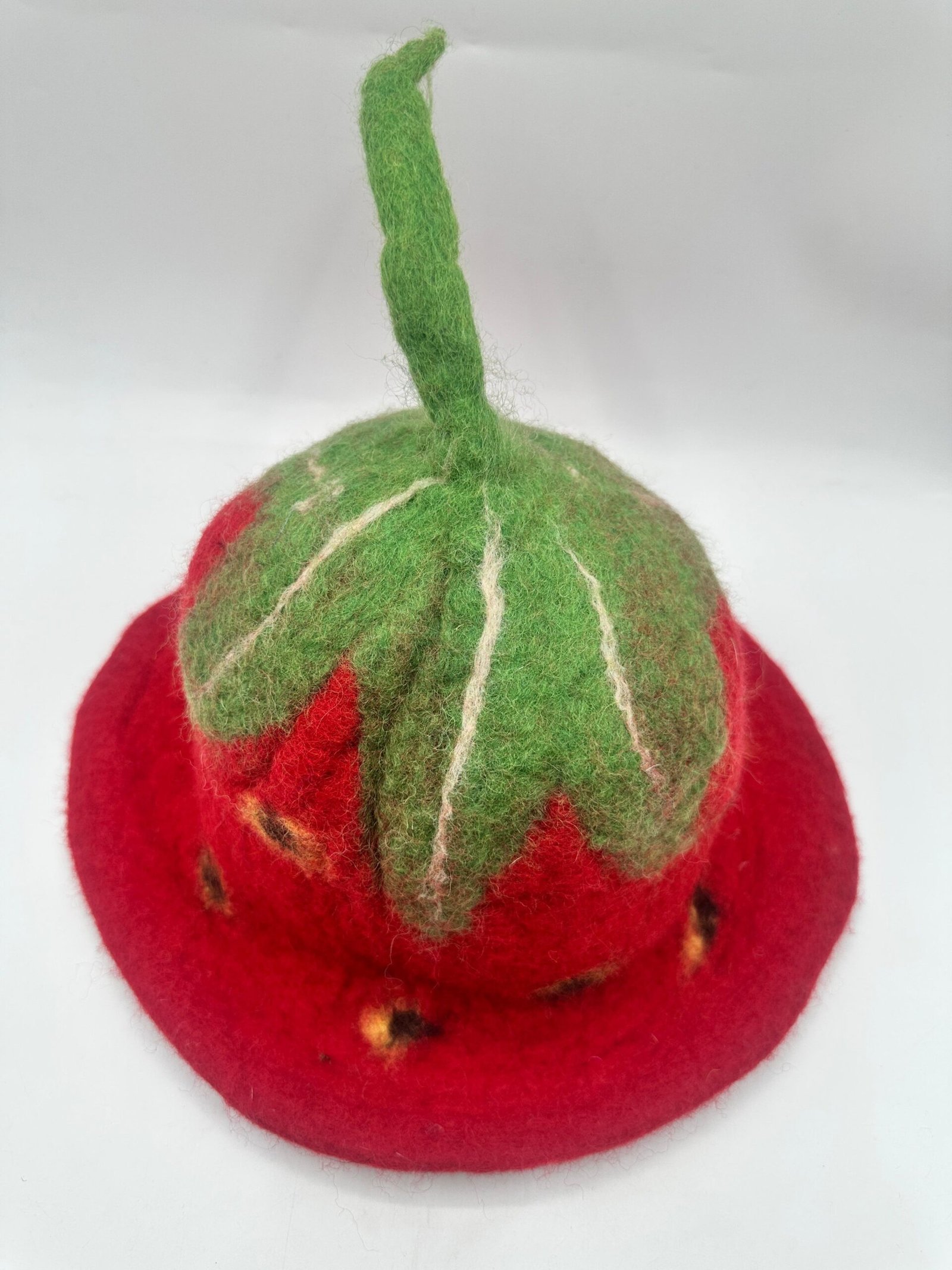 Tags: Eco-Friendly Felt Craft, Felt Strawberry Hat, Fruit-Themed Headwear, Handmade Felt Accessory, Novelty Hat, Playful Fashion, Whimsical Hat